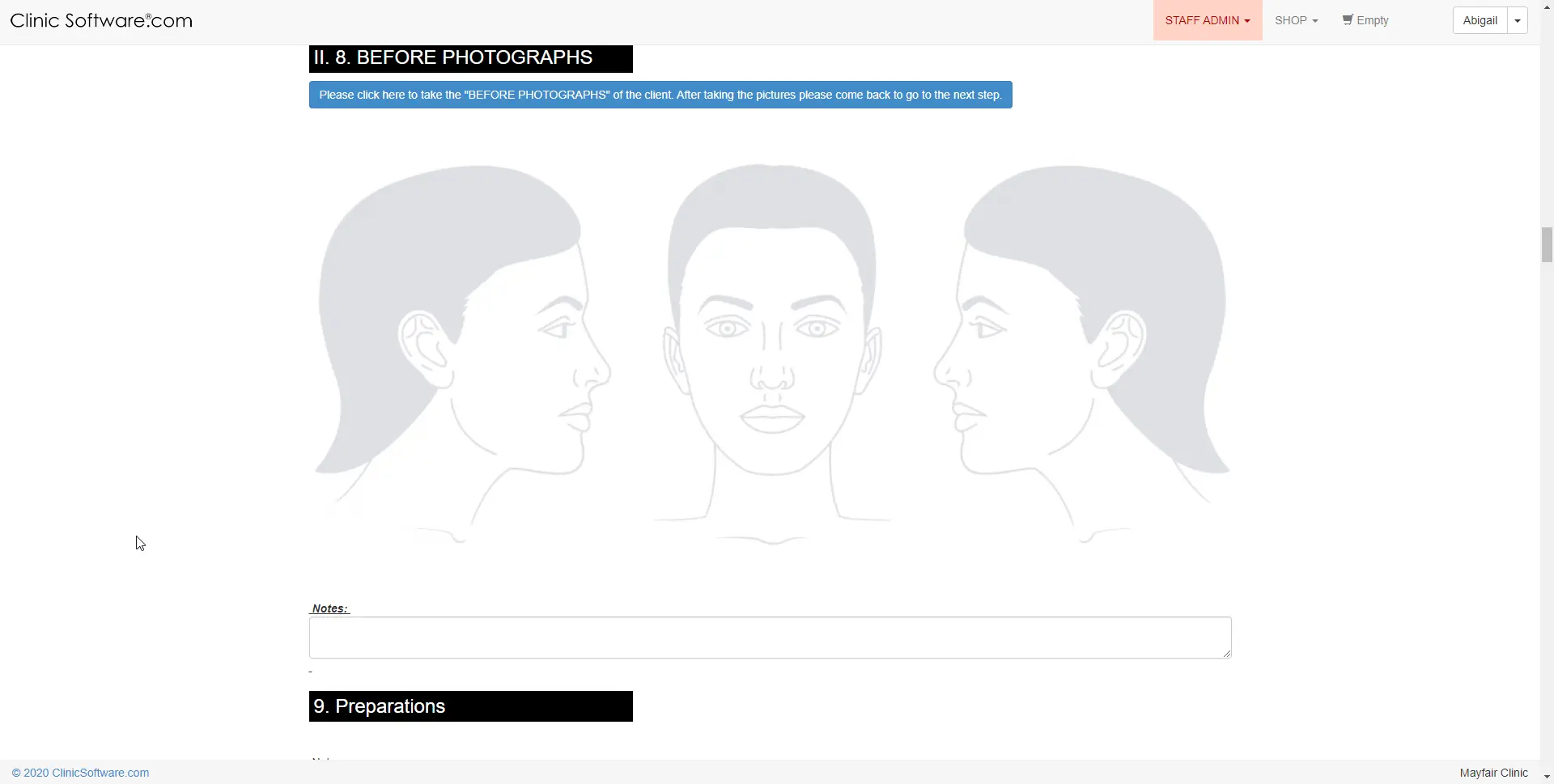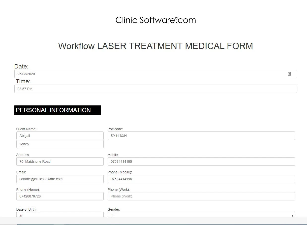 The workflow will open and you will see all the personal information of your client.You can type notes from the client consultation.