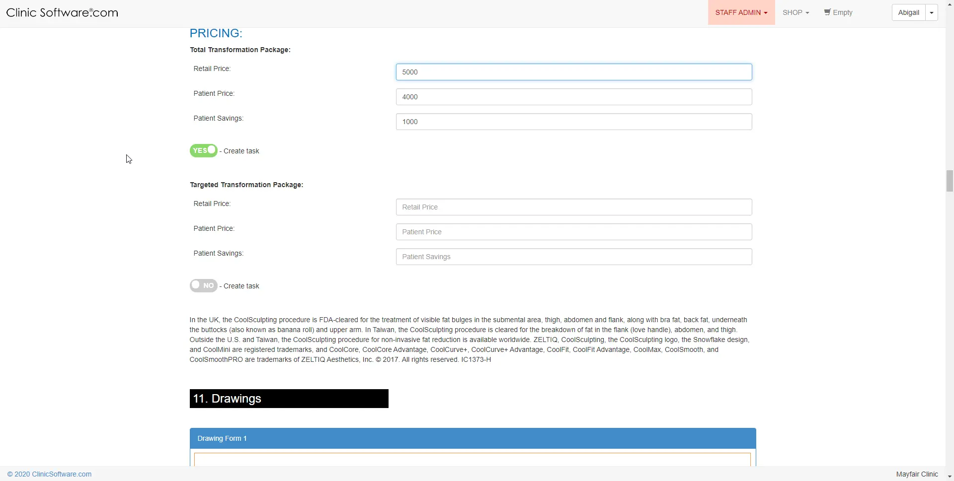 You can type the price of your treatment