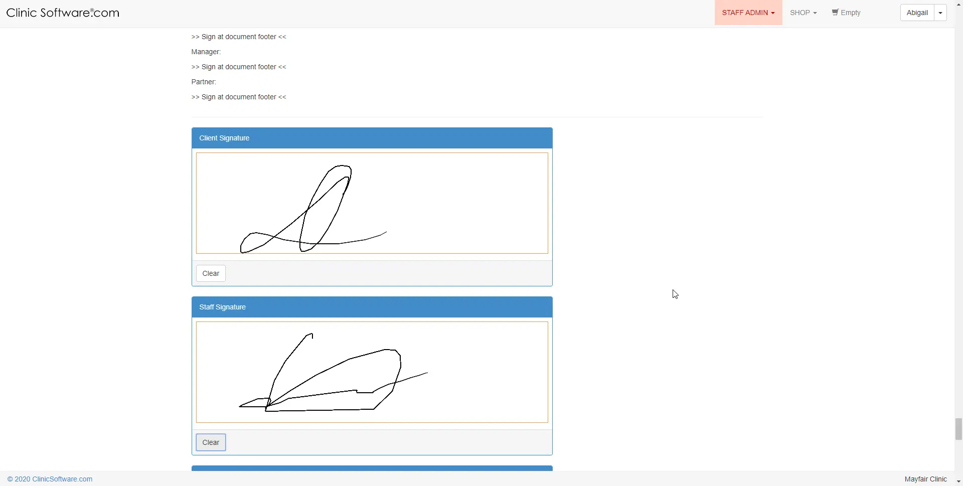 Mandatory signatures of both, the client and the staff member.